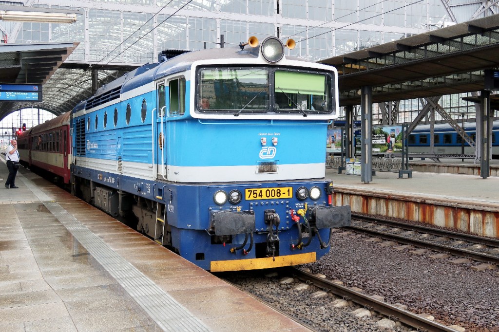 Im Prager Hauptbahnhof (PRAHA HLAVNI NÁDRAŽI) erwischte ich (10.08.2019) die legendäre Diesellok TAUCHERBRILLE (Brejlovec/ Okuliarnik, Bj. 1988).