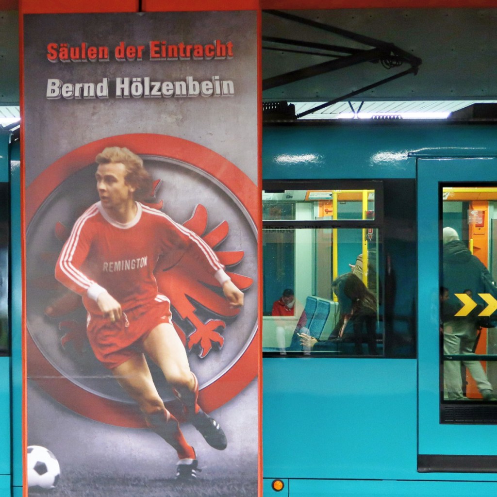 Die SÄULEN DER EINTRACHT sind nicht nur die 12 Legenden, auf deren Schultern der Mythos Eintracht Frankfurt ruht, sondern auch im Sinne des Wortes die Säulen, auf denen die Legenden verewigt worden sind. Wer in Frankfurt lebt, wird sie kennen: Die U-Bahn-Station »Willy Brandt-Platz«. Dort, auf den 12 markanten Säulen der Station der Linien U1, U2 und U3, prangen seit 2013 großflächig die 11 legendären Spieler und ihr Trainer. Beispielsweise Jürgen Grabowski, Bernd Hölzenbein, Bruno Pezzey, Karl-Heinz ›Charly‹ Körbel, Bum Kun Cha, Anthony Yeboah, Uwe Bein.