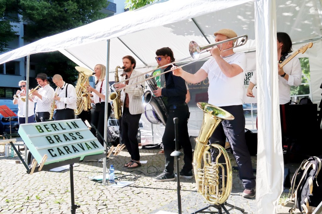 am Brandenburger Tor statt. Am Charlottograder Karl-August-Platz fetzte zuvor »Berlin Brass Caravan« mit BALKAN-BRASS (21.06.).