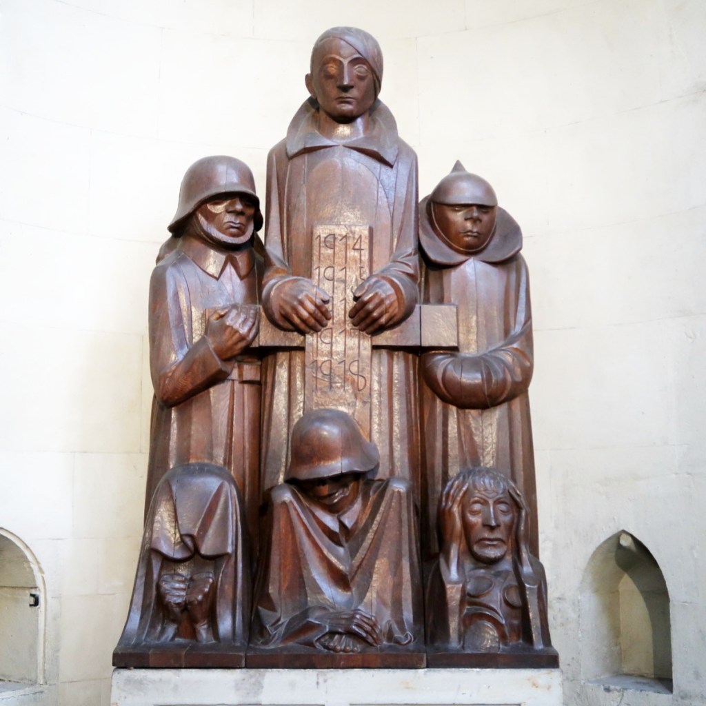 Das Denkmal des Krieges im Dom zu Magdeburg. Das »MAGDEBURGER EHRENMAL« ist eine Holzplastik von ERNST BARLACH. Das Mahnmal zeigt zwei mal drei Personen, die aus drei großen geleimten Eichenblöcken geformt sind. Mittig ein Kreuz mit den Jahreszahlen 1914–1918. Barlach selbst charakterisierte die Halbfiguren im unteren Bereich als NOT, TOD und VERZWEIFLUNG, die dahinter stehenden Figuren symbolisieren den KRIEGSERFAHRENDEN, den WISSENDEN und den NAIVEN. Erstmals aufgestellt wurde das Ehrenmal am Totensonntag 1929. Die Plastik wurde 1934 wieder entfernt. Am 19. September 1955 wurde das Ehrenmal erneut im Dom aufgestellt. Dort befindet es sich noch. Gestern besuchte ich Magdeburg und den Dom.