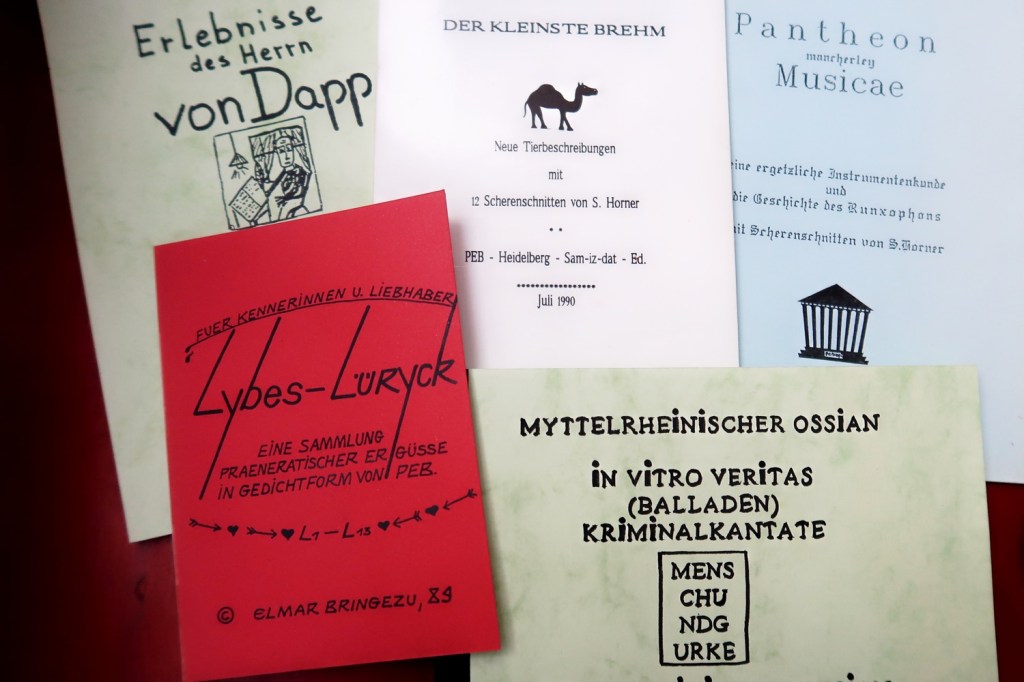 Der Myttelrheinische Ossian. Bringezu liest Bringezu, Balladen – Sonette – Romanzen, CD 1998/ 99. Seine schöne markante Stimme bleibt. Ab 1983 Produktion von kleinen Büchern: Erlebnisse des Herrn von Dapp (1983/ 1989); Pantheon mancherley Musicae – Beiträge zur Geschichte des Runxophons (1989); Lybeslüryck (1989); Der kleinste Brehm (1990); Triangulum haereticum (1991); …