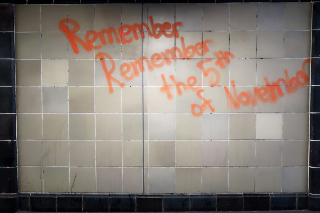 NEIN, das Foto hat nichts mit Belsazar zu tun! Der von Geisterhand geschriebene Satz erinnert an GUY FAWKES (›Gunpowder Plot‹). Am 5. November.