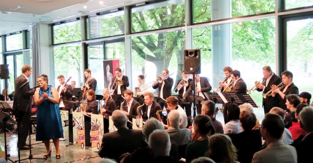 Noite de música brasileira com o VICCHIO DOYLE DUO e a FLINTSTONES BIG BAND (Embaixada do Brasil/ 11.05.). Die Kälte ging, die Konzertbesucher:innen tanzten beschwingt dem Sommer entgegen.