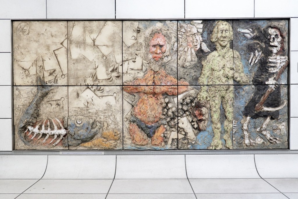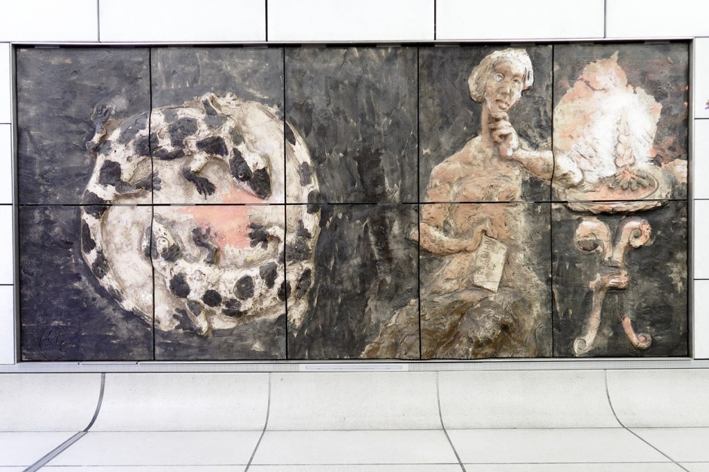 MARKUS LÜPERTZ (*25. April 1941) ›Schöpfung‹ ist jetzt vollständig. Das 14. und letzte Werk des Lüpertz-Zyklus »GENESIS« wurde im Karlsruher Untergrund montiert (28.04./ 09.05.). Zwanzig Tonnen Ton hat Lüpertz für die Reliefs des Zyklus verarbeitet. Das Werk ist in sieben Stationen der Karlsruher ›U-Strab‹ zu sehen. Für mindestens sechs Jahre wird Lüpertz 14-teiliger Zyklus im Karlsruher Untergrund bleiben – als Leihgabe des Vereins »Kunst erfahren«. Was danach damit passiert, ist (noch) offen.