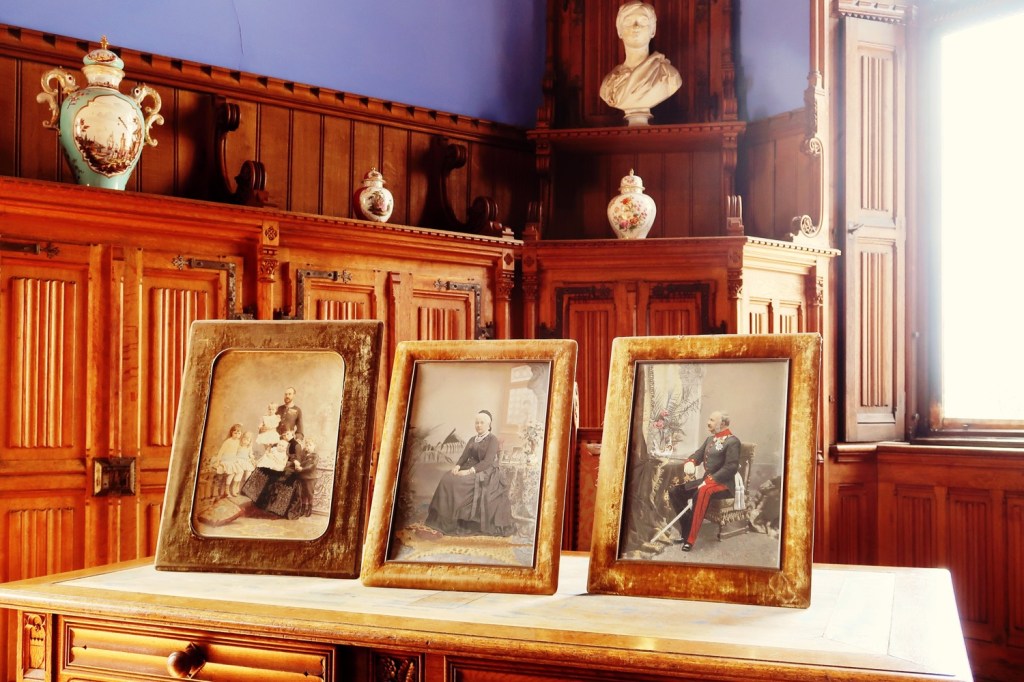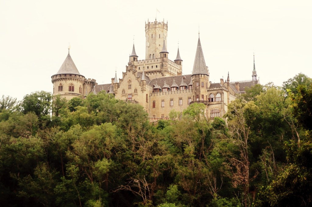 Fahrt zum ›Pinkel- und Prügelprinz‹ ERNST HAUGUST (*1954). »His Royal Highness Ernest Augustus Guelph« ist ein Nachkomme der WELFEN  und ein Urenkel des letzten deutschen Kaisers Wilhelm II. Das Oberhaupt der Welfen ist mehrfach mit gewalttätigen oder beleidigenden Ausbrüchen in die ›Schlagzeilen‹ geraten. ADEL VERPFLICHTET. Die pittoreske Schlossanlage mit ihren neugotischen Fassaden, Türmen und Dächern wurde ab 1857 als Sommerresidenz der Welfen erbaut. Zehn Jahre später war sie fertig gestellt. König Georg V. schenkte das Märchenschloss ›seiner Marie‹ zum Geburtstag. Seit 2019/ 2020 wurde die Schlossanlage in eine Stiftung überführt. Steuerersparnis für das älteste Adelsgeschlecht, erste Bundes- und Landesmittel in Höhe von fast 30 Millionen Euro für die Er- und Unterhaltung. Die königlichen Gemächer können jetzt vollumfänglich besichtigt werden. Im Museumsshop gab es Regenschirme. Als Reminiszenz an Haugusts Prügelattacken?