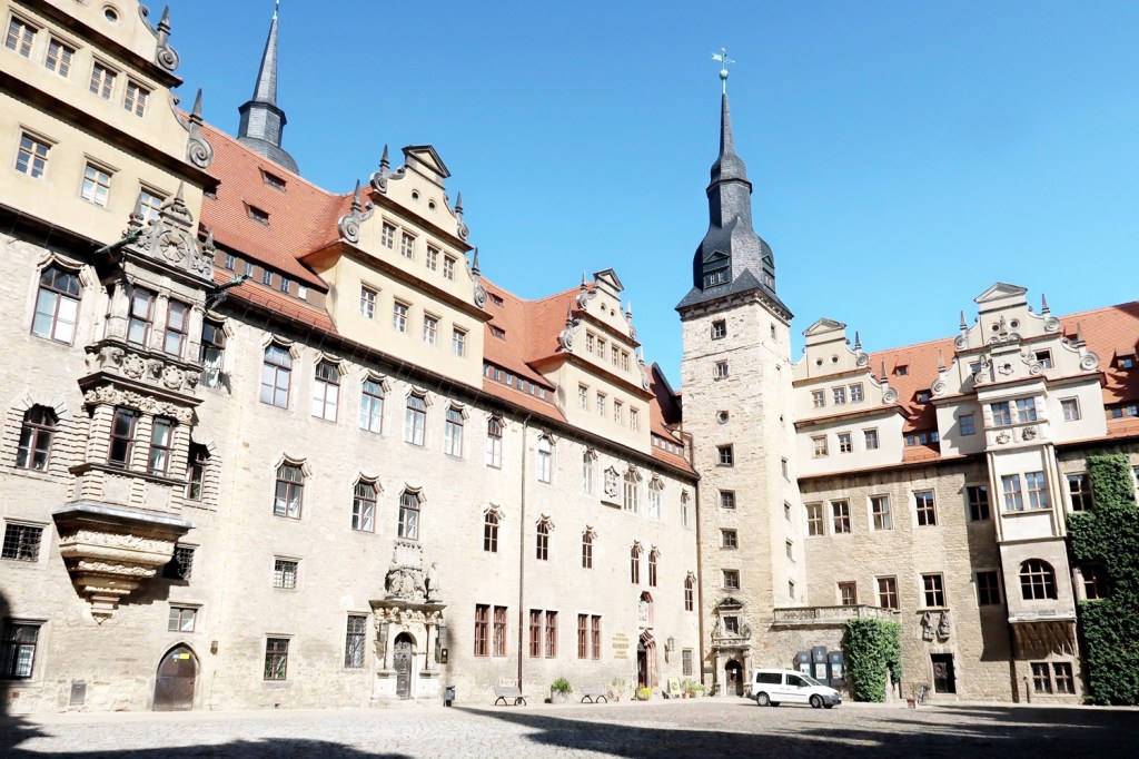 Fahrt mit dem Deutschlandticket nach MERSEBURG (Sachsen-Anhalt, 08.09.). Via Lutherstadt Wittenberg, Bitterfeld und Halle/ Saale. In der 33.500 Einwohner zählenden Stadt verkehrt eine Straßenbahnlinie. Besichtigt: Markt mit Staupenbrunnen, Altes Rathaus, Neumarktkirche St. Thomae (romanische Kreuzbasilika), Ständehaus, Krummes Tor. Höhepunkt des Ausfluges bildete aber die Besichtigung des Merseburger Doms und des Schlosses, des Rabenkäfigs und des Schlossgartens. Am 7. Mai 2023 jährte sich zum 1050. Mal der Tod OTTOS DES GROSSEN, der 973 in Merseburg verstarb. DOM (seit 01.07.2018 Welterbestätte): Leider dürfte im Kapitelhaus, in der Südklausur (Domschatz, Zauberspruchgewölbe), in der Krypta sowie in der Fürstengruft nicht fotografiert werden. Shit happens.