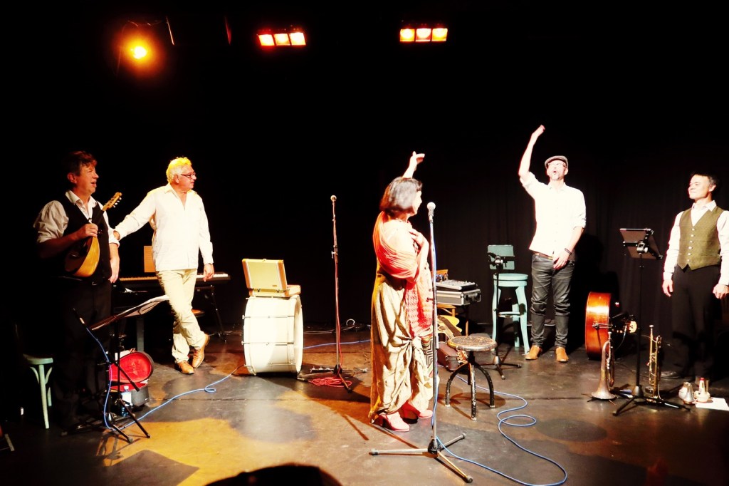 Rachelina, Gesang. Manfred Wittlich, Gitarre/ Mandoline; Hans-W. Weber, Klavier/ Keyboard; Michele Castellarin, Mundharmonica/ Marschtrommel; Thomas Langlotz, Kontrabass/ Gitarre; Aki Ruhl, Trompete/ Flügelhorn/ Kontrabass. Wunderbare Musiker, tolles Konzert. GROSSES KINO eben.