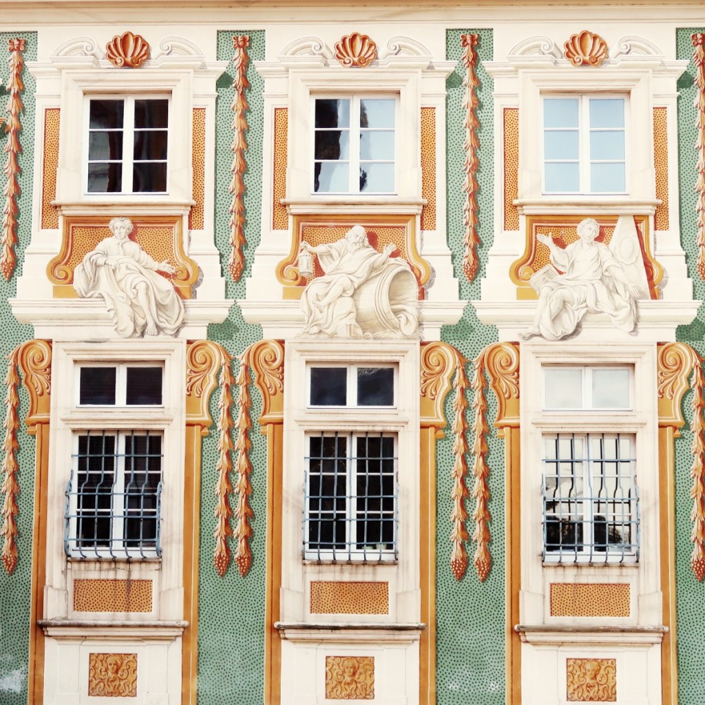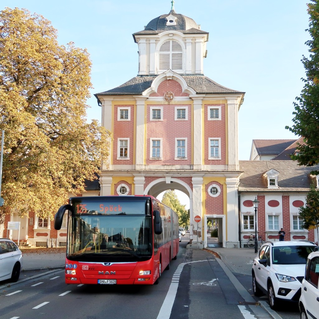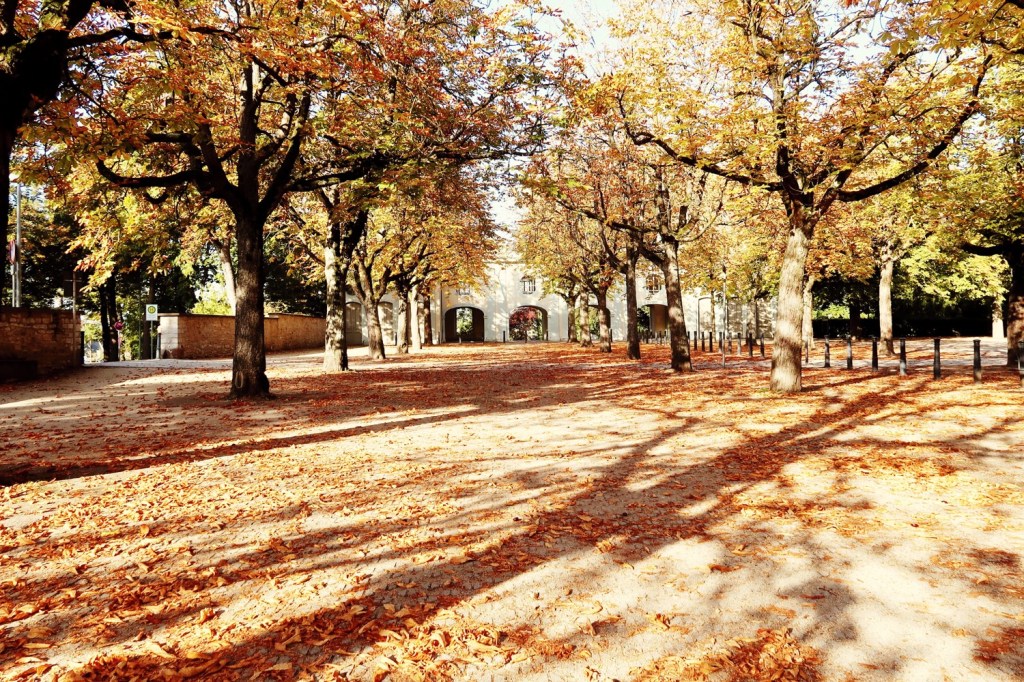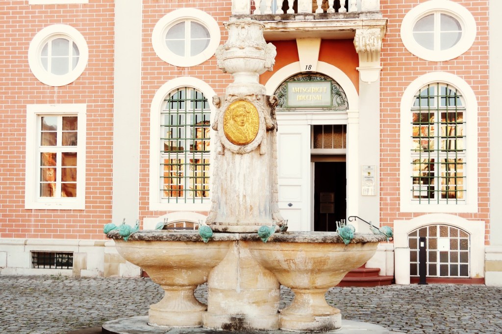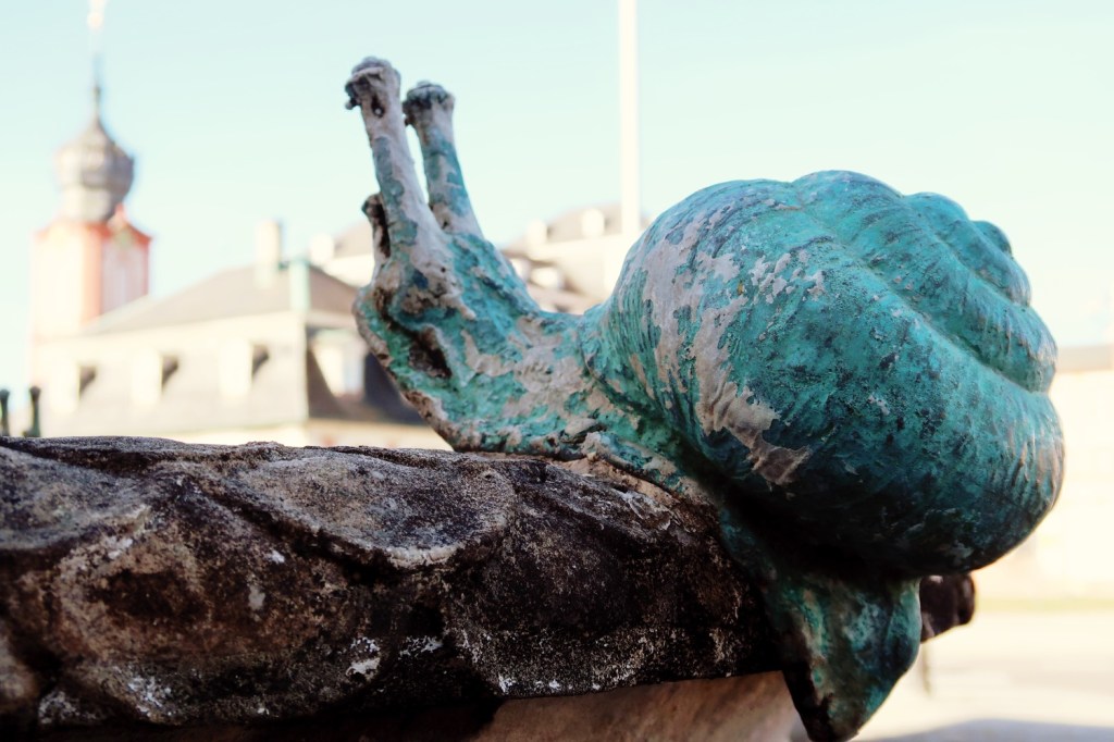 des Zentralbaus (1989). Das »Café Achteck« bietet einen ernsten Gegensatz zur unweit gelegenen ehemaligen Barockresidenz