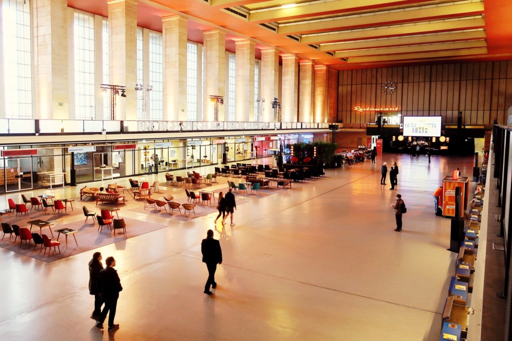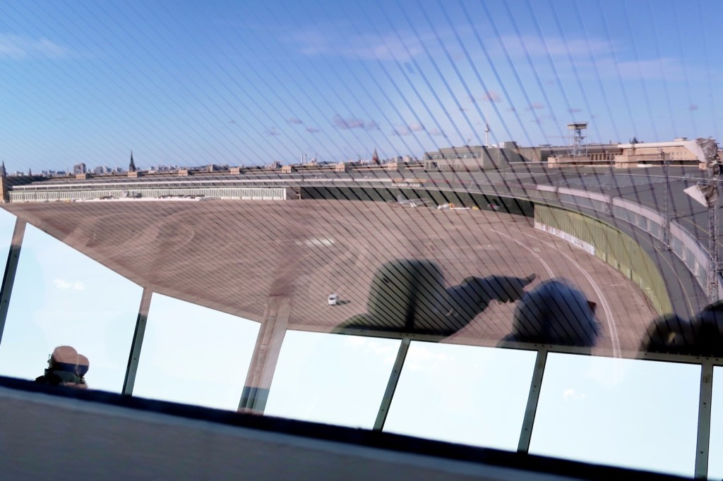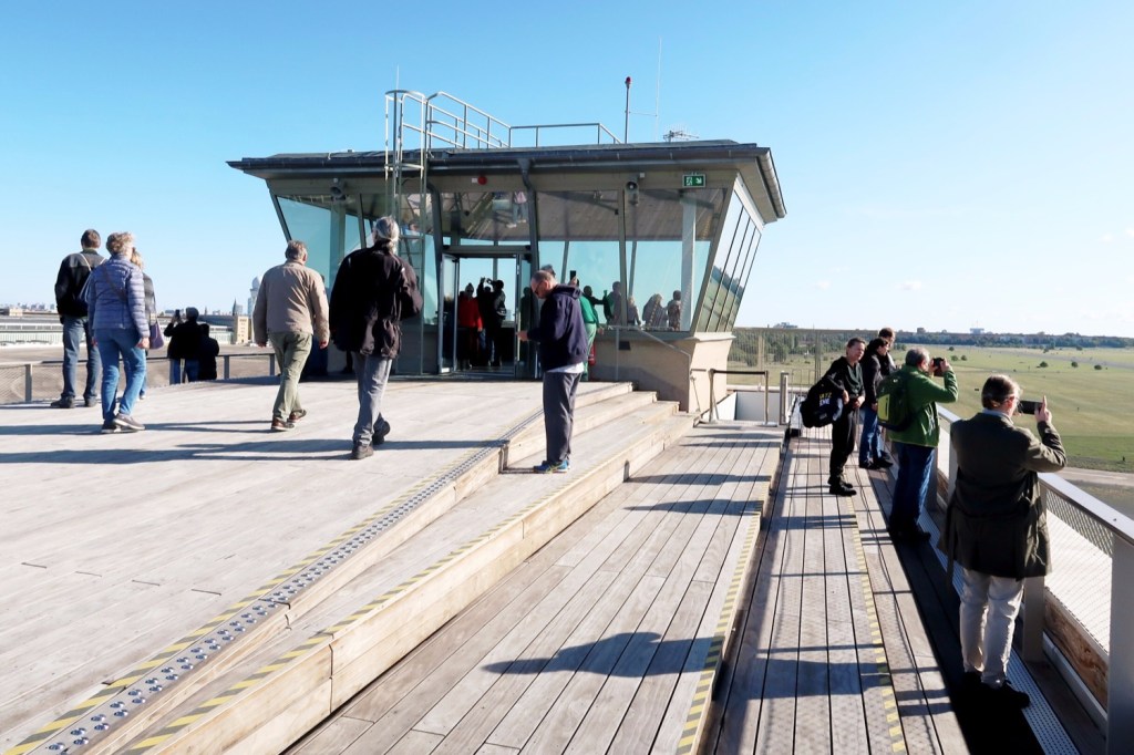 Am vergangenen Wochenende wurde erstmal ordentlich gefeiert: Happy Birthday, Tempelhof! Zum 100-jährigen Bestehen öffnete der ehemalige ZENTRALFLUGHAFEN seine Türen und bot 100 Stunden nonstop Jubiläumsprogramm (06.–10.10.). »Ready for Take-Off«: Start für das Ganze war Freitag um 18:00 Uhr. »Check-in«: Die ABFERTIGUNGSHALLE des unter Denkmalschutz stehenden Flughafengebäude-Komplexes war durchgehend geöffnet. In der Halle und auf dem gesamten Gelände gab es ein vielfältiges Programm mit Führungen, Ausstellungen, Konzerten, Poetry Slam, Kinovorführungen, Fitnessangeboten, Tanzveranstaltungen und Party. Ein Großteil der Angebote war dabei für die Besucher:innen kostenfrei. Auch sonst unzugängliche Bereiche des Flughafens waren zugänglich. Highlight war – bei schönstem Sonntagswetter – der begehbare ehemalige THF-TOWER (Eingang über den U-Bahnhof »Paradestraße«). »Follow me«.