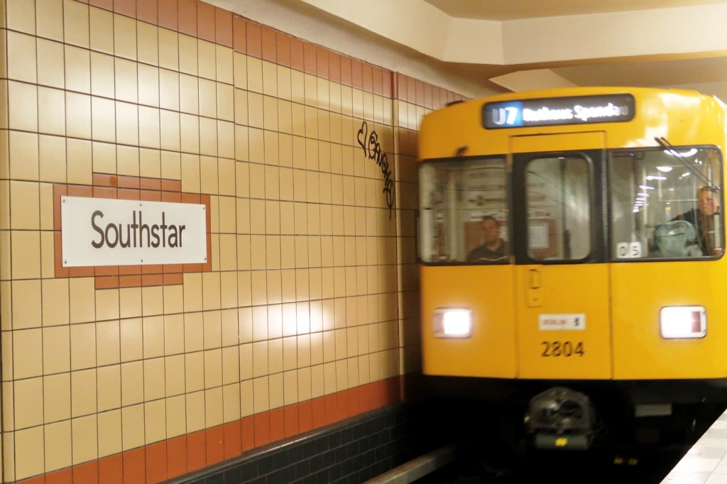 SÜDSTERN. Der U-Bahnhof wird ausschließlich von der Linie U7 bedient. Der U-Bahnhof Südstern ging unter dem Namen Hasenheide in Betrieb. Am 3. Juni 1933 bekam die Station den Namen Kaiser-Friedrich-Platz, gut fünf Jahre später erfolgte am 1. Januar 1939 die nächste Umbenennung in Gardepionierplatz. Am 24. Mai 1944 trafen bei alliierten Luftangriffen zwei Bomben den Bahnhof direkt. Dabei gab es schwere Zerstörungen im Gleisbereich. Mitte April 1945 traf wiederum eine Fliegerbombe die Station und zerstörte einen Großteil der Bahnhofsdecke. Der erste Pendelzug fuhr wieder am 11. Juni 1945 zwischen den Bahnhöfen Hermannplatz und Belle-Alliance-Straße (heute Hallesches Tor). Zwei Jahre später hieß die Station Südstern. Seit Dezember 2023 Southstar, oder?