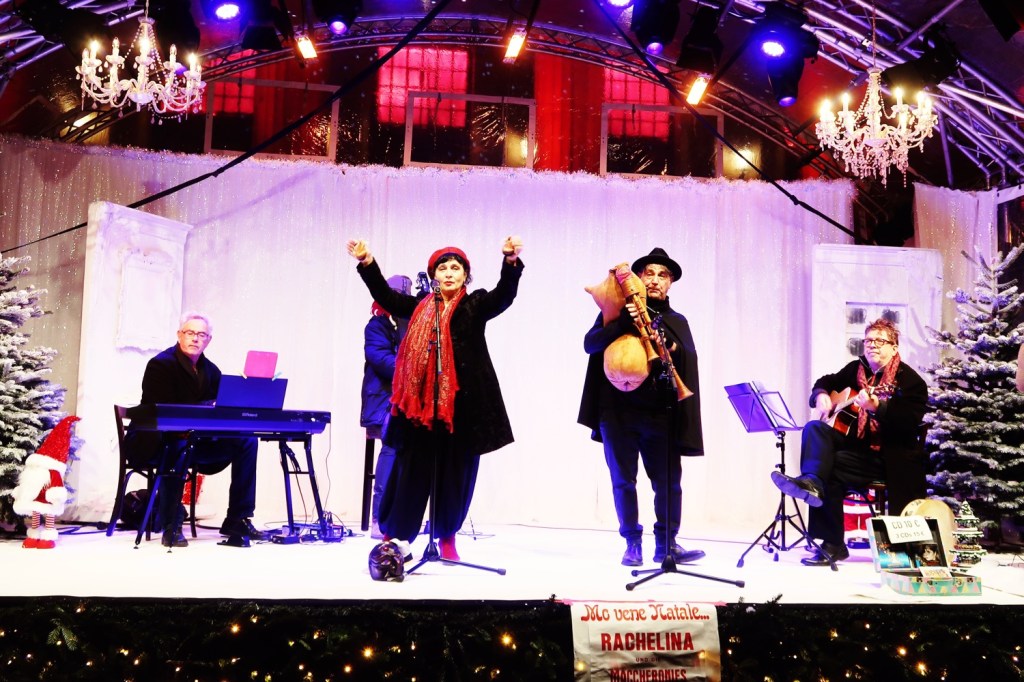 LICHTBLICK Für besinnliche und fröhliche Weihnachtsstimmung sorgten auf der Hauptbühne RACHELINA UND DIE MACCHERONIES zusammen mit dem Schalmeienspieler (zampognaro) ALBERICO LARATO (25.11.). Stimmungsvolle pastorale Melodien gehören in ganz Italien so selbstverständlich zum Weihnachtsfest wie die Figuren der Musikanten auf den Krippen. Rechtzeitig zum Weihnachtsfest hat der italienische Kinderchor »i BiRiCHiNi« unter der Leitung von Rachelina die neue CD »ABRACADABRA« eingespielt. Ein schönes Geschenk!