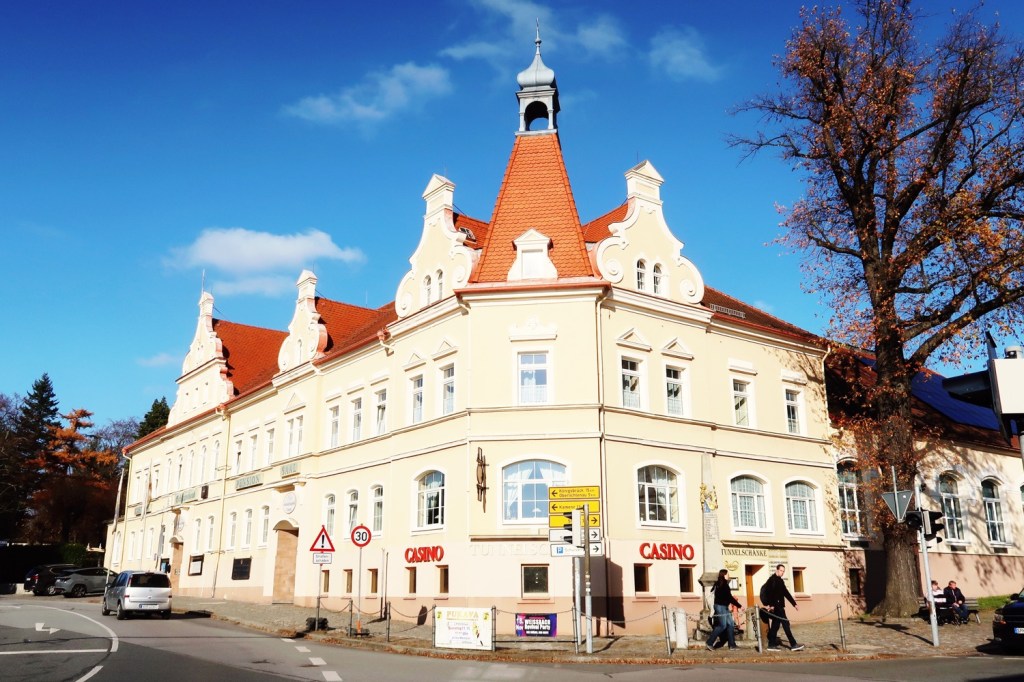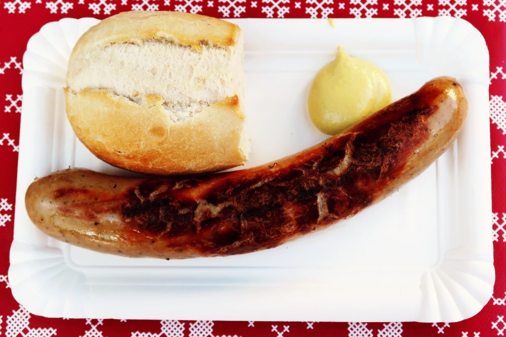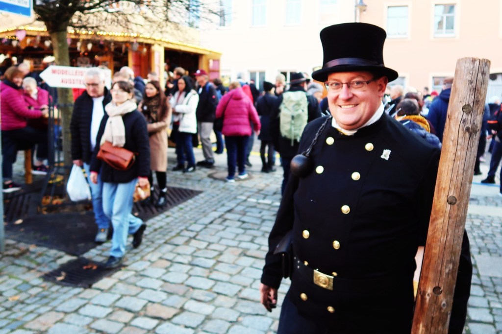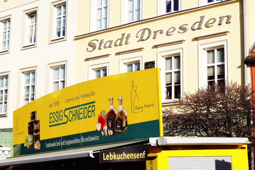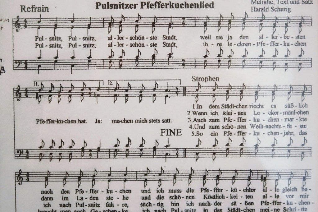 In der gesamten Altstadt waren Stände mit − Achtung ›sächsisch‹ − Gunstgewerbe und Spezialitäten aufgebaut (08.11.). Beispielsweise mit FETTBEMMCHEN. Am Marktplatz waren alle neun örtlichen Pfefferküchlereien vertreten. Davor Schlangen. Ich reihte mich in der kürzeste ein (»Keine Kartenzahlung möglich«). Walnuss-Pfefferkuchen, Haselnuss-Pfefferkuchen, Gewürzpfefferkuchen, ungefüllte rechteckige Pfefferkuchen mit Zartbitter-Schokolade überzogen und mit Mandeln belegt, Lebkuchenmänner. Lecker, lecker, lecker. Aber auch vor den Stammhäusern der Pfefferküchlereien: lange Schlangen. Vieles steht im Zeichen des Pfefferkuchens: Pfefferkuchenbier, Pfefferkuchensenf, Pfefferkuchen-Klopse, Pfefferkuchen-Leberwurst und PFEFFERKUCHEN-BRATWURST (Bild). Die Eingeborenen sind sehr freundlich und hilfsbereit, nu. Sehr gut beraten wurde ich in der Metzgerei Dürrröhrsdorfer. Interessant war der Besuch des Pfefferkuchen-Museums.