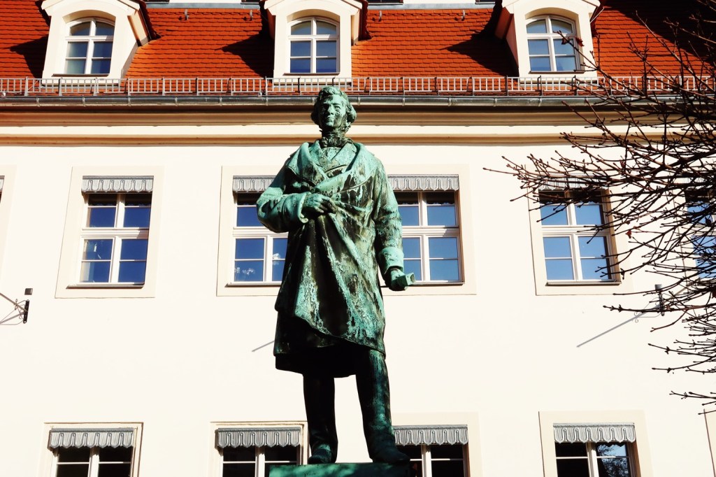 Kursächsische Postdistanzsäule aus dem Jahr 1731 vor dem Schützenhaus, Nachbildung. Die spätgotische St.-Nikolai-Kirche mit der Pfützner-Orgel. Turmbesteigung. Wegen der Schlange war ich nicht im Kirchenschiff. Bildhauer Ernst Rietschel (1804−1861). Bekannt ist er durch von ihm geschaffenen Skulpturen wie das Goethe-Schiller-Denkmal in Weimar oder das Lessing-Denkmal in Braunschweig. Pulsnitz hat seit diesem Jahr ein offizielles Maskottchen: das PFEFFERLE.