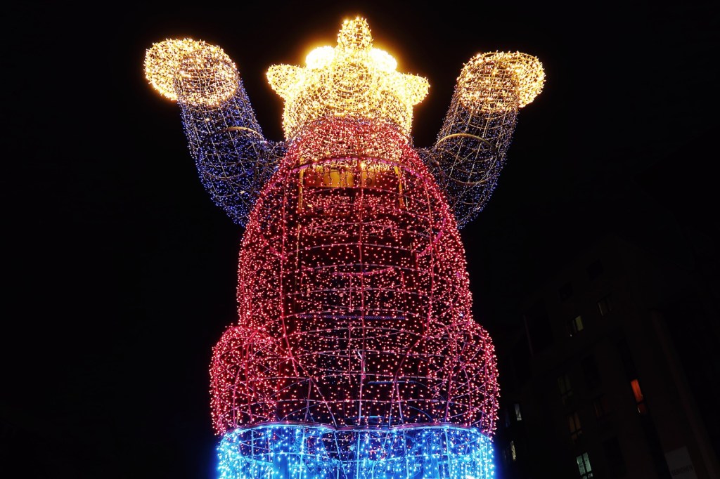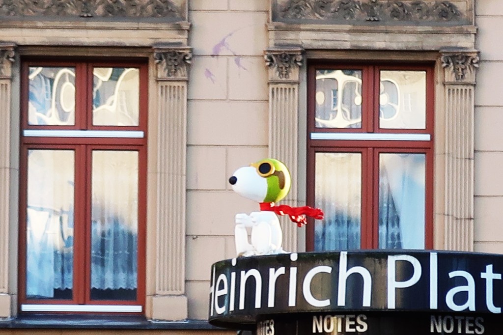 Noch vier Wochen bis Weihnachten. Am Montag nach dem Totensonntag öffnen traditionell die Weihnachtsmärkte. Deshalb heißt es jetzt vielerorts »Attacke! Auf ins Weihnachtsgetümmel.« Mit Snoo-oo-oo-oo-oopy. Gesehen aktuell am Kreuzberger Rio-Reiser-Platz, der bis August 2022 noch Heinrich Platz hieß (23.11.).