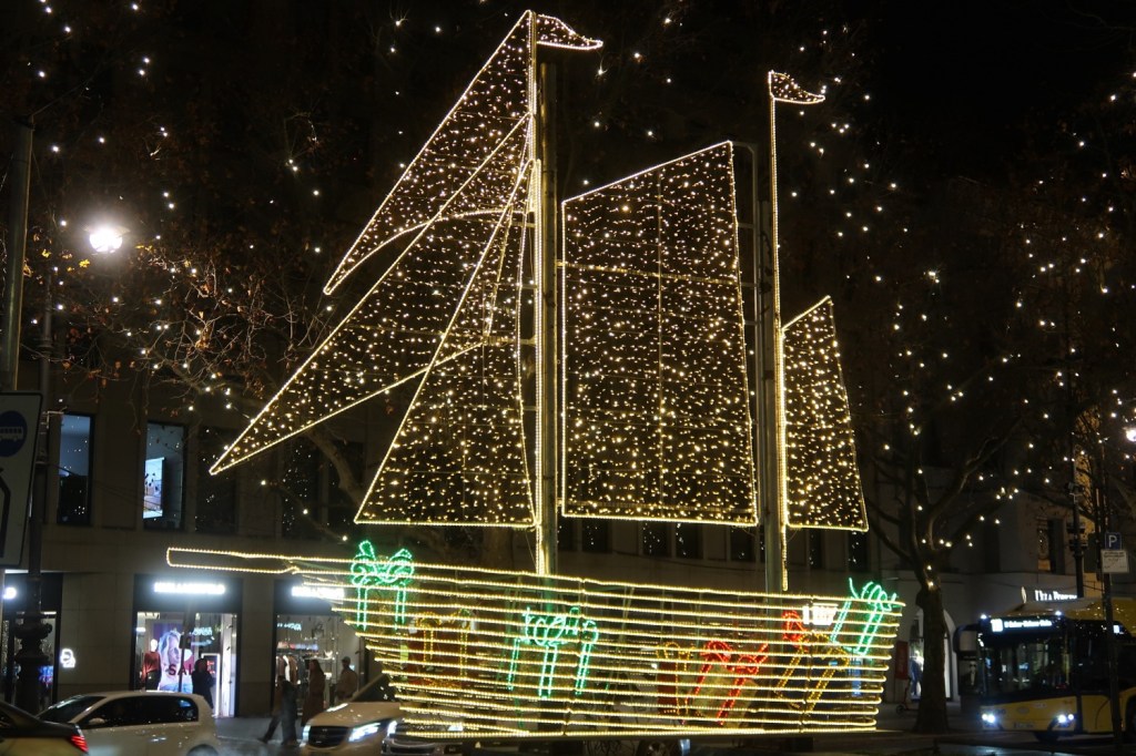 Die Berliner City West erstrahlt vom KaDeWe über die Tauentzienstraße und den Kurfürstendamm bis zum Rathenauplatz in Halensee. Diesmal ist wieder die komplette 4,5 Kilometer lange Strecke weihnachtlich beleuchtet. Rund 100.000 Leuchten, verteilt auf mehr als 550 Bäume, setzen den Boulevard in Szene. Zu den Hinguckern der Weihnachtsbeleuchtung gehören die Großfiguren. Eine Besonderheit unter den Großmotiven ist in diesem Jahr laut dem Lichtdesigner Andreas Boehlke ein Schiff, das zuvor in Barcelona zu sehen war. Dieses steht jetzt in der Mitte des Boulevards KUDAMM.
