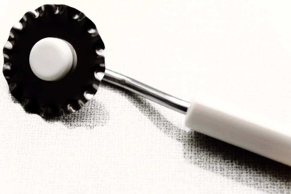 Mit einem Teigrädchen (als Kinder sagten wir »Rähle-Rähle« dazu) kleine Felder ausschneiden. CAVE: der Teig muss kalt verarbeitet werden.