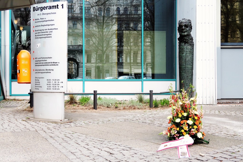 Vor 91 Jahren überfiel ein Trupp der faschistischen Sturmabteilung (SA) das RATHAUS KREUZBERG (10.03.1933). Die Schläger attackierten Beschäftigte und misshandelten öffentlich Bürgermeister Dr. CARL HERZ (1877–1951). Zum Gedenken an diesen brutalen Übergriff legten der Stellvertretende Bezirksbürgermeister Oliver Nöll und der Vorsitzende der Bezirks- verordnetenversammlung (BVV) Werner Heck an der Carl-Herz-Stele vor dem Kreuzberger Rathaus ein Blumengesteck nieder (11.03.).