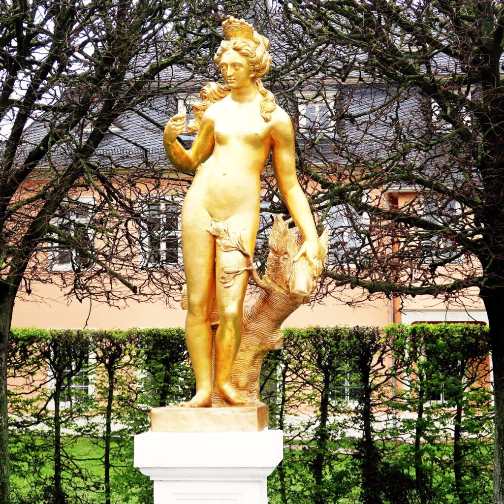 Sehenswürdigkeiten: nördliche und südliche Zirkelbauten, ARIONBRUNNEN, HIRSCHBASSIN, Laubengänge, Obstgarten, Moschee mit Türkischem Garten, Geschlängel mit Pan, Apollotempel mit Naturtheater, Orangerie. Das berühmte Rokokotheater kann in diesem Jahr nur zweimal besichtigt werden.