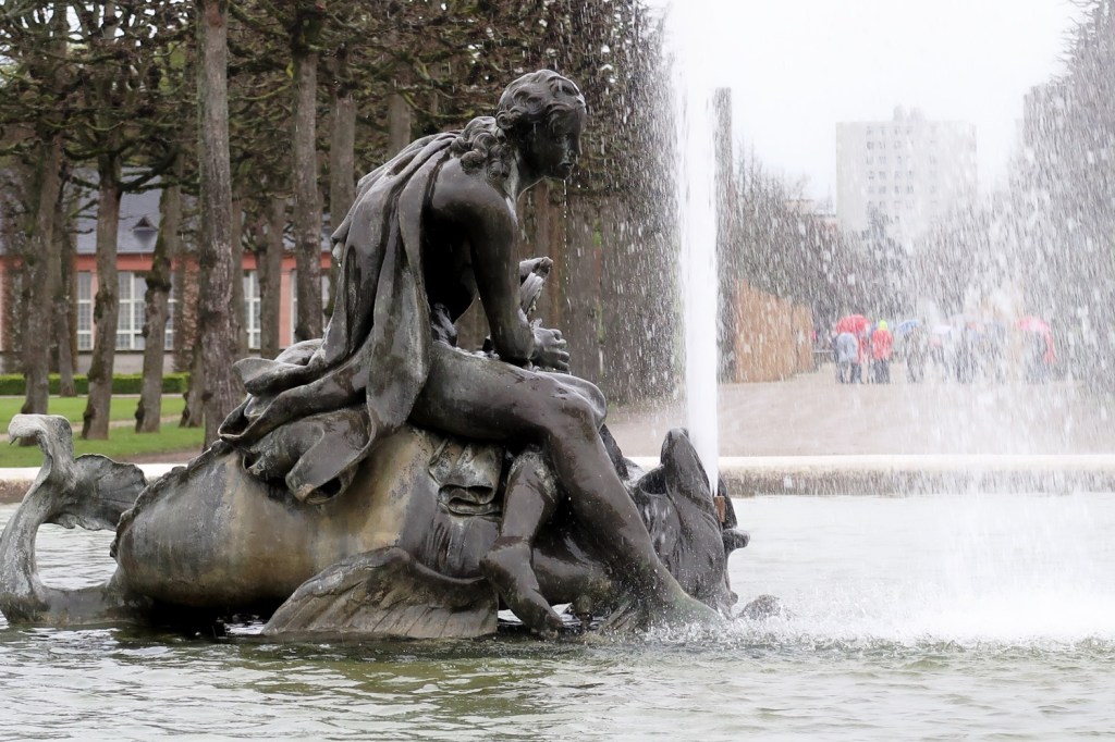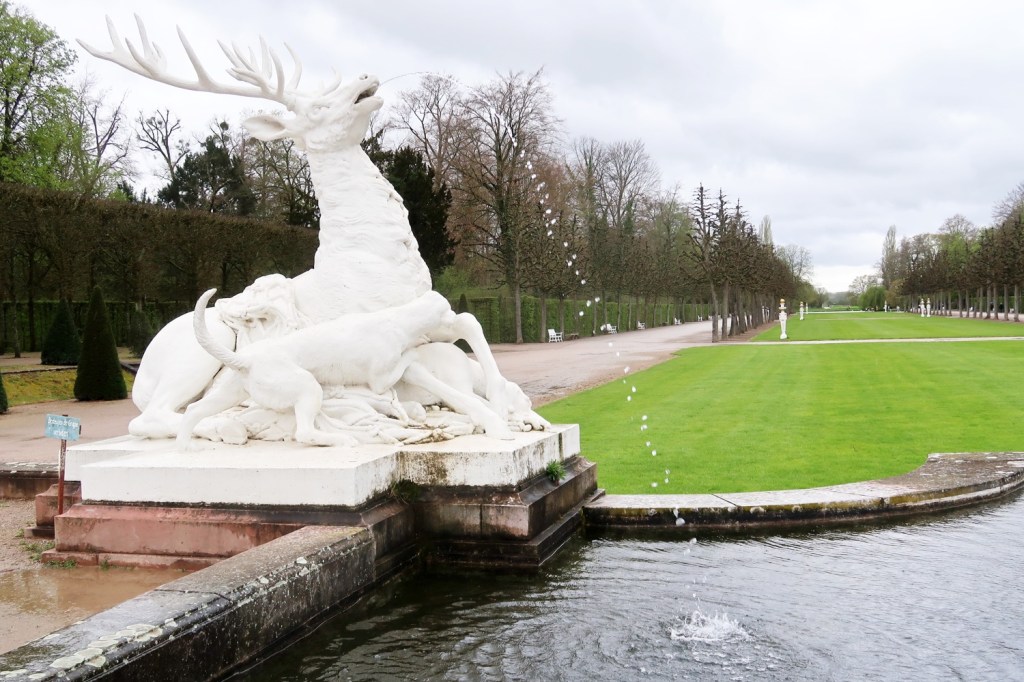 Goldfinger lässt grüßen. Beim Hirschbassin geht der Barockgarten in den englischen Landschaftsgarten über. Die Rasenflächen wurden ursprünglich als Nutzgärten genutzt.