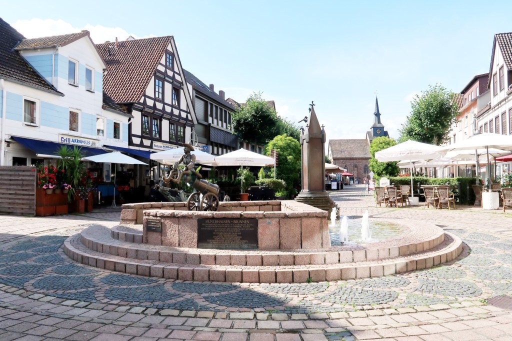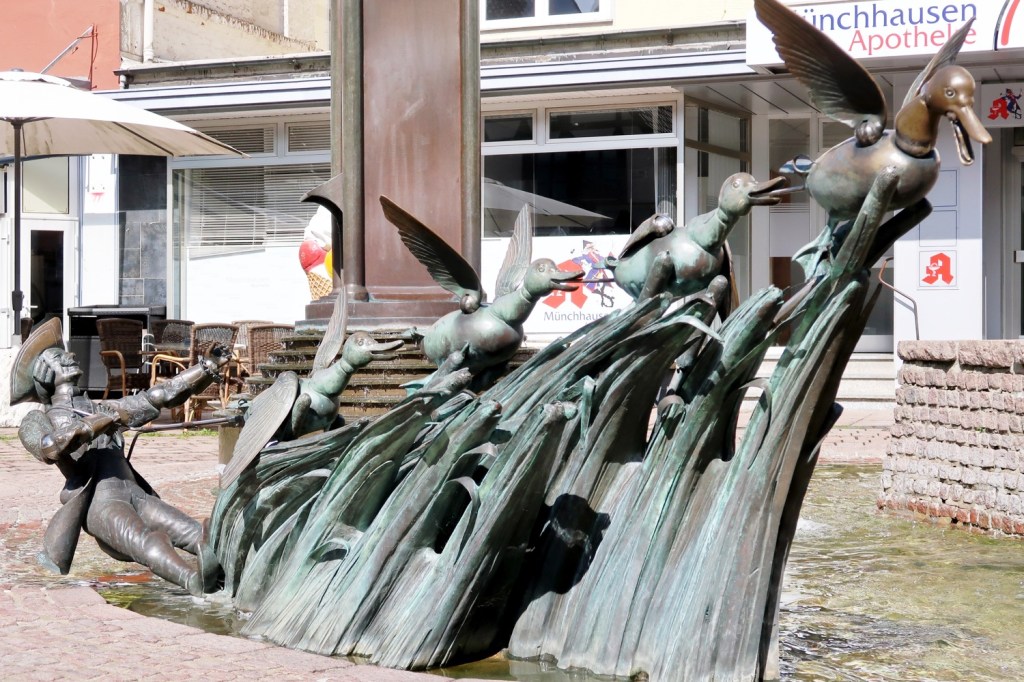 Der Münchhausen-Brunnen mit dem halben Pferd entstand 1962/ 63 im Park des ehemaligen Münchhausen-Gutshofes. Die Brunnenanlage wurde von Bruno Schmitz anlässlich der 675-Jahrfeier gefertigt. Er stellt eine Anekdote aus dem Türkenkrieg dar, als Münchhausen seinen ›halben Litauer‹ am Marktbrunnen zu Oczakow trinken lässt. Der große Münchhausen-Brunnen in der Fußgängerzone wurde 1994 vom Bildhauer Bonifatius Stirnberg aus Aachen gefertigt. Dieser Brunnen zeigt drei der bekanntesten Münchhausen-Geschichten: das ›Pferd am Kirchturm‹, den ›Entenflug‹ und den ›Ritt auf der Kanonenkugel‹.