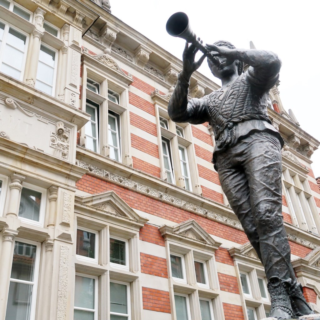 Hinter der Skulptur ist eine Tafel angebracht, die das bekannteste Lied aus der Zeit des Aufstandes zitiert: »Warschauer Kinder zieh’n wir in den Kampf, für jeden deiner Steine, oh Hauptstadt, geben wir unser Blut.«