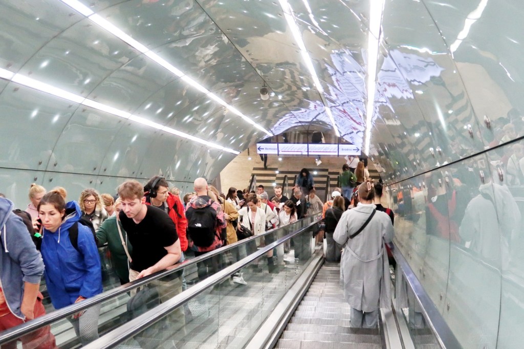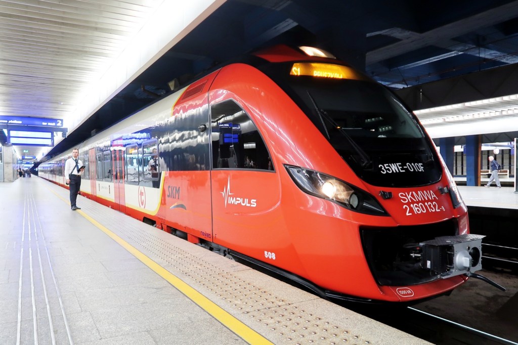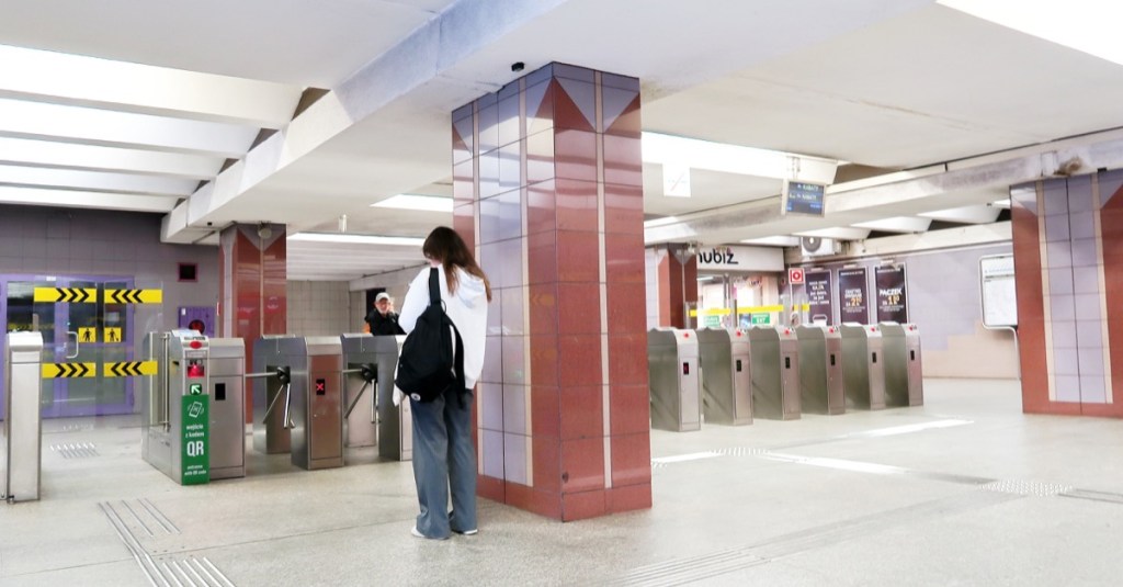 Getränkeautomat. Logo des Städtischen Verkehrsamts – der »Warszawski Transport Publiczny« – mit der stilisierten Sirene in den Warschauer Farben Rot-Gelb. Das Warschauer Verkehrsnetz erstreckt sich über 3.600 Kilometer. Die STADTSCHNELLBAHN in Warschau (»Szybka Kolej Miejska w Warszawie«, kurz SKMWA) verkehrt auf vier Linien im Großraum der polnischen Hauptstadt.Metro: Ohne Ticket gelangt man nicht zum Bahnsteig. An diesem Bahnhof kreuzen die M1 und M2. An den Ein- und Ausgängen sowie auf den Bahnsteigen gibt es Hinweistafeln für Blinde und Sehbehinderte. Die Türen öffnen und schließen automatisch. Das Design der Sitze.