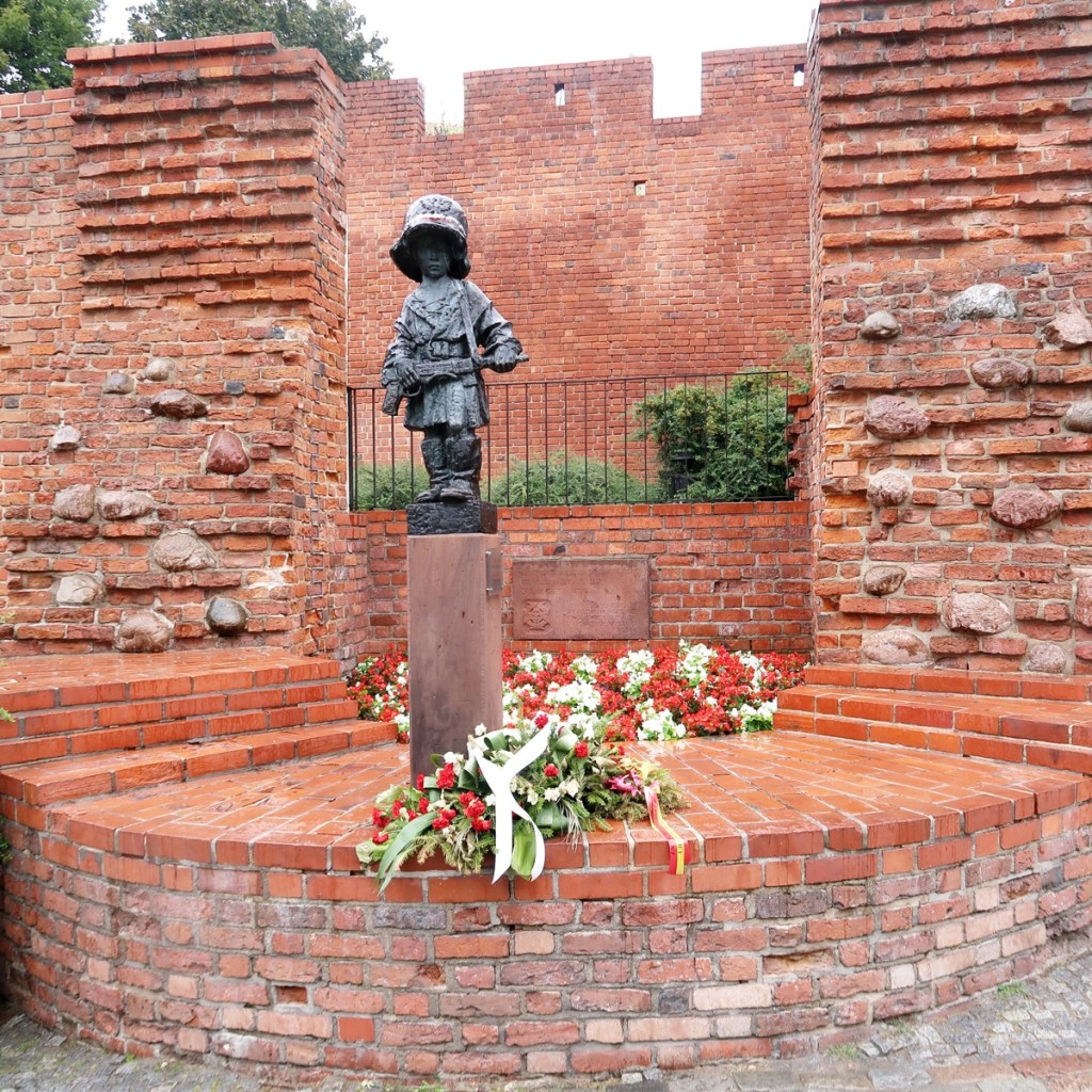 Das Denkmal wurde am 1. Oktober 1983 enthüllt. Die etwa 150 Zentimeter hohe Skulptur hat mich verstört. Ein Kind in viel zu großen Militärstiefeln, mit einem viel zu großen Stahlhelm auf dem kleinen Kopf, in den Händen eine Maschinenpistole. Das Denkmal entstand nach dem Muster einer kleinen Gipsstatuette, die der spätere Bildhauer Jerzy Jarnuszkiewicz (1919–2005) kurz nach dem Zweiten Weltkrieg angefertigt hatte. Von ihr erfolgte 1983 ein Abguss, der die Grundlage für die Gießung des Denkmals bildete. Vor seinem Tod hatte Jarnuszkiewicz geäußert, dass er das Denkmal in dieser Form nicht hätte aufstellen lassen.