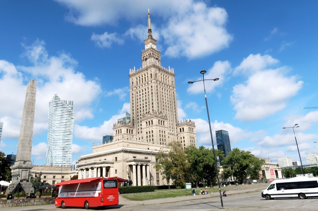 Fahrt mit dem Reisebus nach WARSZAWA (Warschau) an der mittleren WISLA (Weichsel) in der Woiwodschaft MASOWIEN gelegen (07.–10.08.). Seit 1991 ist Warschau die Partnerstadt Berlins. Die Skyline der Business-Metropole erinnert mich an ›Main Frankfurt‹.