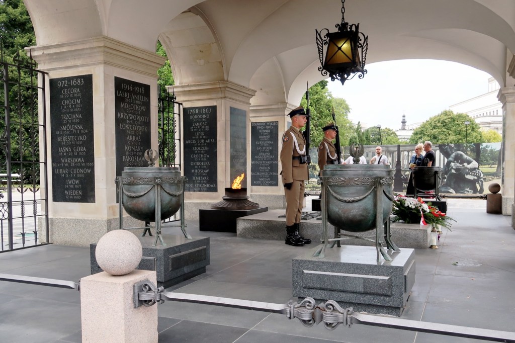 Statt Erinnerung und Andenken sah man von Anfang an nur heftigen Streit und schädigende Polemik. Diese Tragödie wurde von der polnischen Politik als Werkzeug für ihre Machtspielchen missbraucht. Handstreichartig wurde damals der Wawel (der Dom der Krakauer Königsburg), wo Polens Könige, Freiheitskämpfer und Dichter liegen, zum Begräbnisort des Ehepaars Kaczyński bestimmt. An jedem 10. April von 2011 bis 2018 organisierte die Partei Recht und Gerechtigkeit (PiS/ Prawo i Sprawiedliwosc) von Jaroslaw Kaczyński sogenannte ›Smolensk-Erinnerungsmärsche‹. Polnische Intellektuelle sprachen in diesem Zusammenhang von »Smoleńsk-Sekte« und »Säkularer Smoleńsk Religion«.Das Smoleńsk-Denkmal ähnelt der Form nach einer Zugangstreppe (Gangway) eines Flugzeugs. Dort sah man die Opfer zum letzten Mal. Die Konstruktion ist aus Stahlbeton und wurde mit schwarzen Granitplatten umhüllt. Die eingeritzten Namen der Opfer auf dem Denkmal wurden alphabetisch und ohne Titel geordnet. Aus kleinen Nischen in den Wänden des Grabens strahlen 96 Lichter. Manche Warschauer:innen nennen das umstrittene Denkmal ›Himmelstreppe‹. Beide Denkmäler wurden 2018 errichtet.Reste des Säulengangs, der die beiden Palastflügel des ›Sächsischen Palais‹ in der Mitte miteinander verband. Er wurde in den Jahren 1839–1842 am ›Sächsischen Garten‹ erbaut. Hier entstand 1924 das GRABMAL DES UNBEKANNTEN SOLDATEN. Der Soldat kam 1920 bei der Verteidigung von Lemberg (damals polnisch) um und wurde hier im November 1925 bestattet. Die beiden Wachsoldaten werden jeweils zur vollen Stunde abgelöst. Was von den polnischen Königen sächsischer Herkunft blieb. Beide Flügel des von Deutschen zerstörten PALAC SASKI sollen bis 2030 wieder aufgebaut sein. Zurzeit sind die Keller beider Flügel freigelegt. Sie werden archäologisch erforscht.Die Neue Welt (Nowy Świat) führt zum Kreisverkehr ›Rondo de Gaulle‹ mit der einzigen (künstlichen) Palme in Warschau in dessen Mitte. Die »JERUSALEMPALME« wurde für $ 12,000 in den USA hergestellt und steht seit Dezember 2012 hier.Im königlichen Lazienki-Park gibt es im Sommer kostenlose Chopin-Konzerte. In einer Säule der Heilig-Kreuz-Kirche ruht das Herz von Frédéric (polnisch Fryderyk) Chopin.