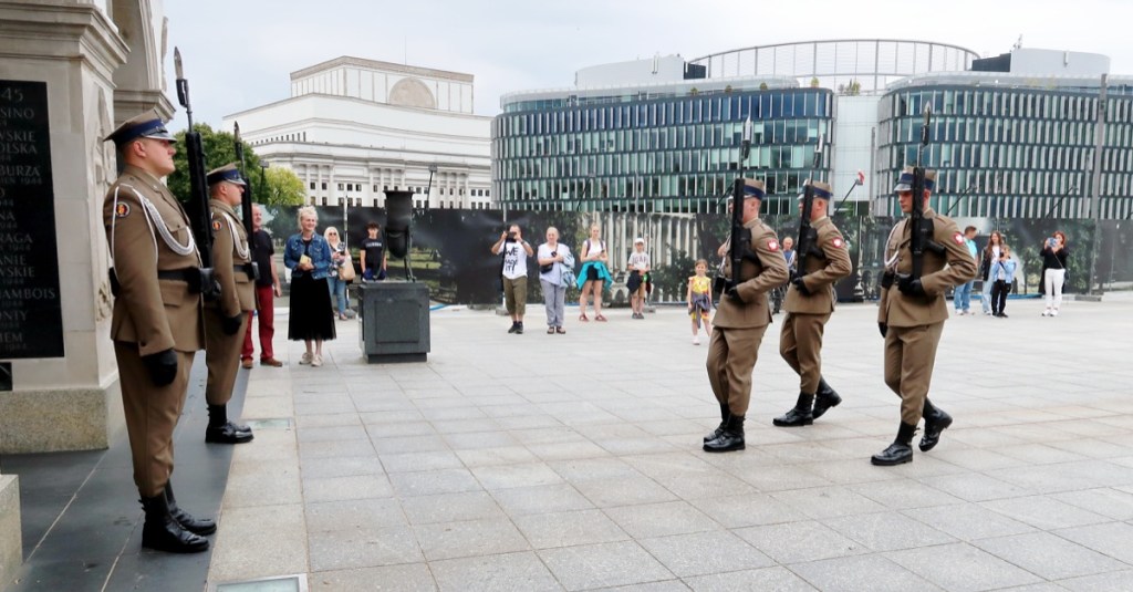 Immer am 1. August wird des Warschauer Aufstandes gedacht, zuerst 1957. Die gesamte Stadt ist dann beflaggt. Unzählige Gedenktafeln, die an Kämpfer:innen erinnern, sind mit Blumen und Kerzen geschmückt. Bald wird am 1. September an den Ausbruch des Zweiten Weltkrieges in Europa erinnert (die Japaner begannen ja früher mit ihren militärischen Überfällen). Heute wird nicht mehr der Friede errungen. Es zählen wieder militärische Siege (›Siegfrieden‹).Die KOTWICA (Anker) war das Symbol der polnischen Widerstandsbewegung während der deutschen Besatzung Polens im Zweiten Weltkrieg. Die Kotwica stellt die Buchstaben P und W dar und steht als Abkürzung für »Polska Walcząca (Kämpfendes Polen)«. 1944 wurde es zu einem der zentralen Symbole des Warschauer Aufstandes und galt als Zeichen der HEIMATARMEE (Armia Krajowa).Das »Denkmal des Kleinen Aufständischen (polnisch Pomnik Małego Powstańca)« steht vor der Stadtmauer der Warschauer Altstadt. Gewidmet ist das Monument den Kindern, die während des Warschauer Aufstandes von 1944 ermordet wurden. Warschauer Pfad- finder waren damals als Melder (Pfadfinderpost) und Sanitätshelfer eingesetzt.