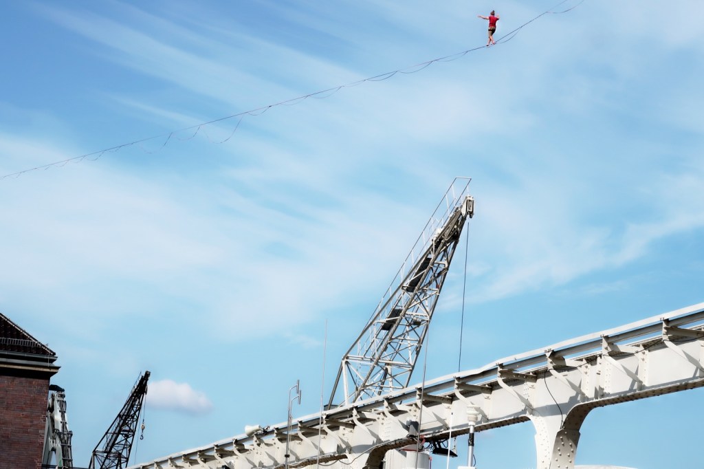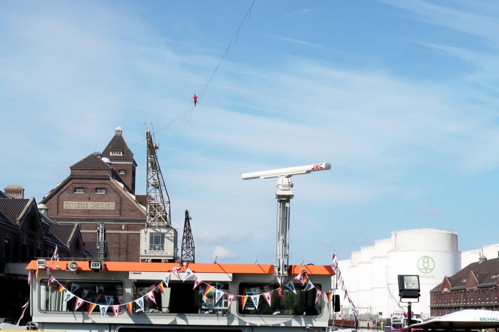 In 40 Meter Höhe und bei spürbarem Wind kein leichtes Unterfangen.