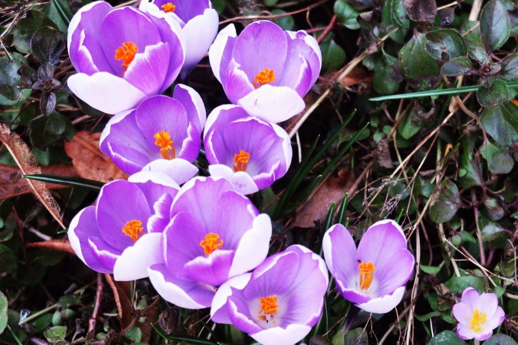 Krokusse. Orientalische Nieswurz. Gemüsekohl. Kleine Netzblatt-Iris. Uups, dit is ne Tulpe, gesehen am Französischen Dom. Noch ’ne Tulpe.