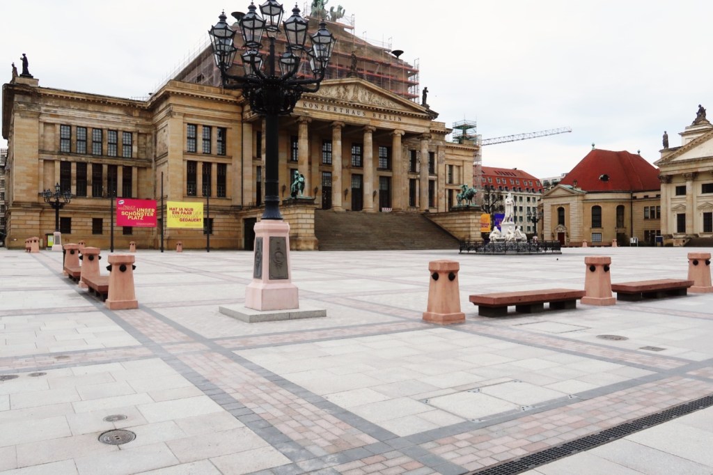 Der GENDARMENMARKT gilt als ›Berlins schönster Platz‹. Kürzlich wurde der Platz frisch saniert wiedereröffnet. Nach 16 Jahren Planung, und zwei Jahren Bauarbeiten. Doch eine Sanierung ohne Bäume? Trotz Klimaerwärmung. Während andere deutsche Städte inzwischen Hitzeschutzpläne erstellt haben, geht die Metropole mutmaßlich einen eigenen ›Berliner Weg‹: Versiegelung und Verdichtung in einer autogerechten Stadt.