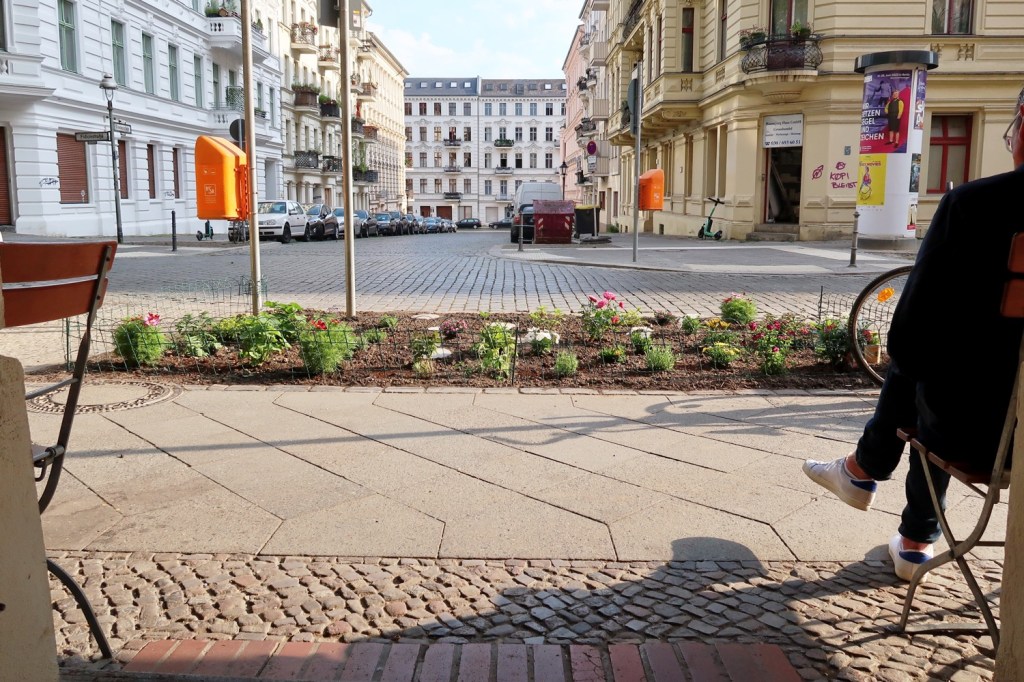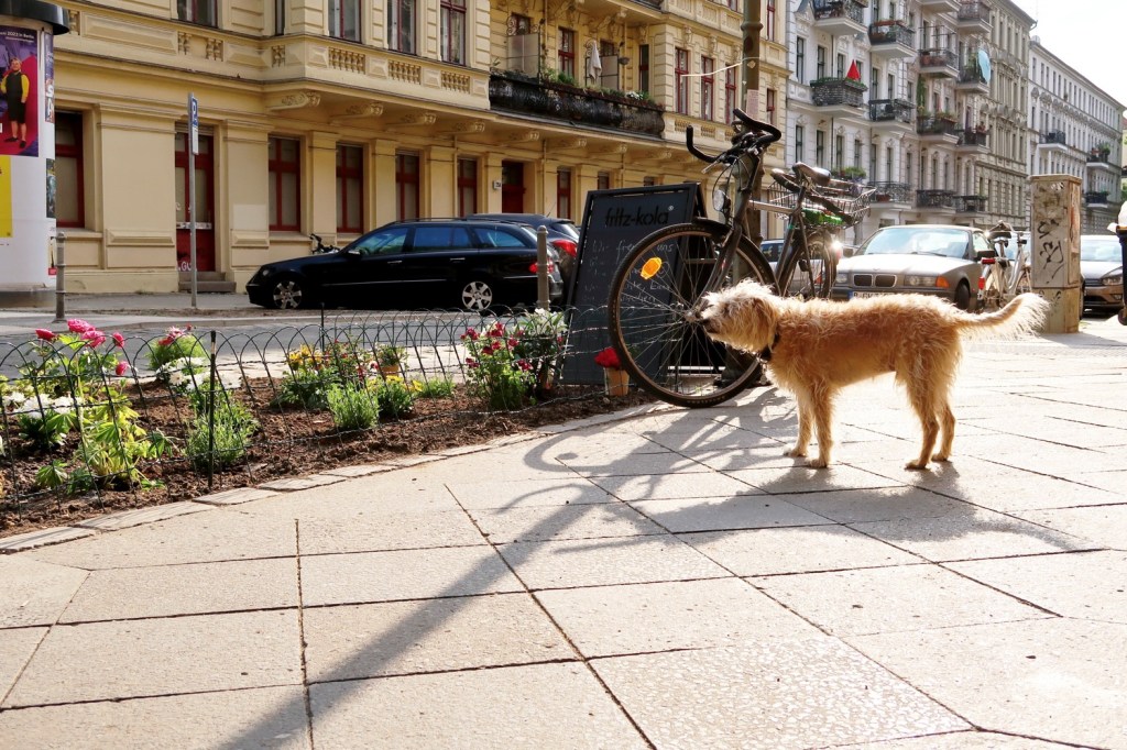 Diesen schönen Stadtgarten legte Miko vor der fabelhaften Backstube (Fidicinstraße) an. Doch Vorsicht! Private Initiativen und Investitionen gefährden das überparteiliche Zwei-Gradplus-Ziel der Klimaerwärmung. Wir schaffen das (trotzdem).Und doch: Die HUNDEBLUME blüht Auch in der Regenpfütze Noch lachen wir Noch machen wir nur Witze! (Aus der BILANZBALLADE IM DREISSIGSTEN JAHR, Wolf Biermann 1973)