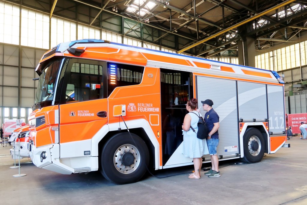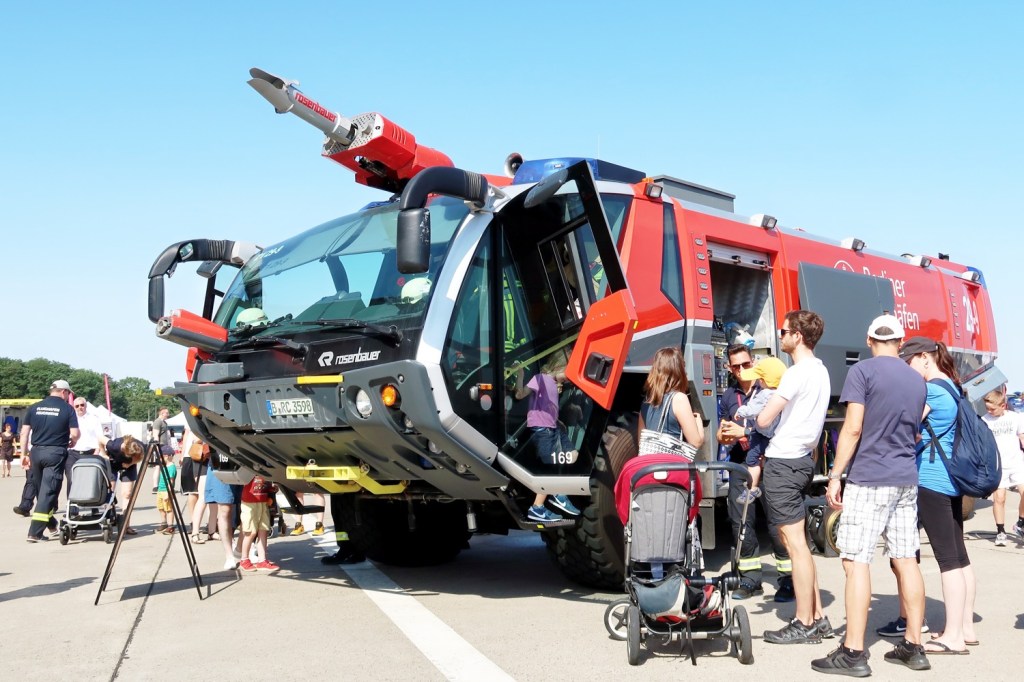 Der »Feuerwehr-Erlebnistag« als zentraler Tag der offenen Tür der Berliner Feuerwehr lockte mit einem spannenden Programm rund um das Thema Feuerwehr. Nach einer vierjährigen Pause hatte die Berliner Feuerwehr wieder einen Publikumstag mit Vorführungen und Informationen veranstaltet (09.07.). Ungeachtet der hohen Temperaturen von mehr als 32 Grad Celsius nutzten am Sonntag vor allem viele Familien die Chance, einen Blick hinter die Kulissen der segensreichen Organisation zu werfen. Erstmals fand der Publikumstag der Berliner Feuerwehr auf dem Gelände am ehemaligen Flughafen Tegel statt. Dort entsteht die Feuerwehr-Akademie. Die Buslinie 109 verkehrte alle fünf Minuten ab U- und S-Bahnhof Jungfernheide in Richtung »Urban Tech Republic«.