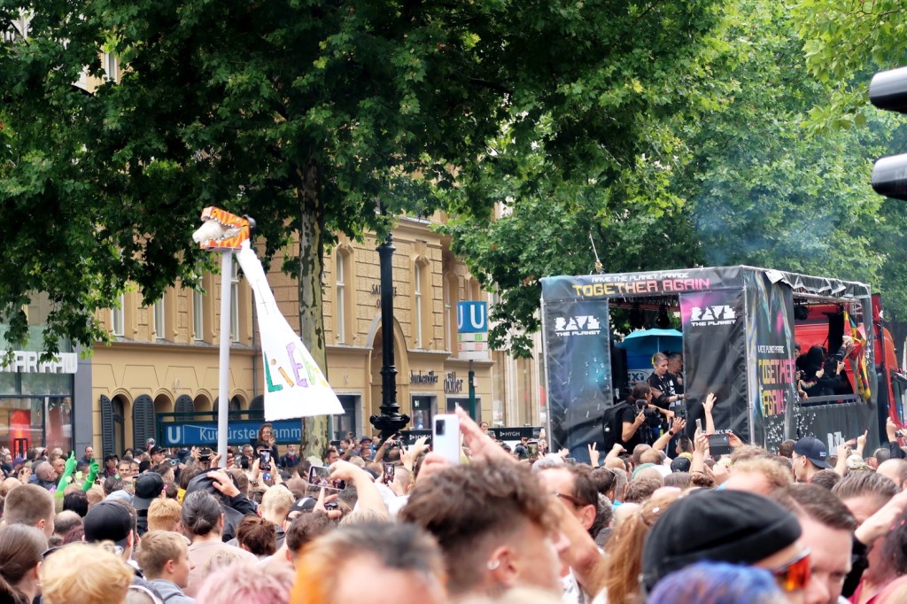 Loveparade-Gründer Dr. Motte (62), mit bürgerlichem Namen Matthias Roeingh, war erstmals 1989 mit einigen Mitstreiter:innen und einem Musiklaster unter dem Motto »Friede, Freude, Eierkuchen« über den Kudamm gezogen. In den 1990er-Jahren entwickelte sich die Loveparade zum Magneten für Hunderttausende. Dann gab der Gründer die Marke ab. 2010 endete die völlig überfüllte Loveparade anderer Organisatoren in Duisburg in einer Katastrophe: 21 Menschen starben, mehr als 500 wurden verletzt. Die Neugründung habe mit der Ursprungsveranstaltung nichts zu tun, betonten die Veranstalter. Doch der ›Geist der Loveparade‹ schwebte mit, zumal Dr. Motte das Motto »Together again« ausgab. Wie früher war die neue Parade als politische Demonstration angemeldet – jedoch nur für 25.000 Teilnehmende.