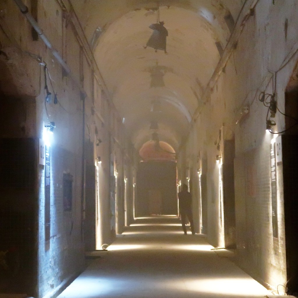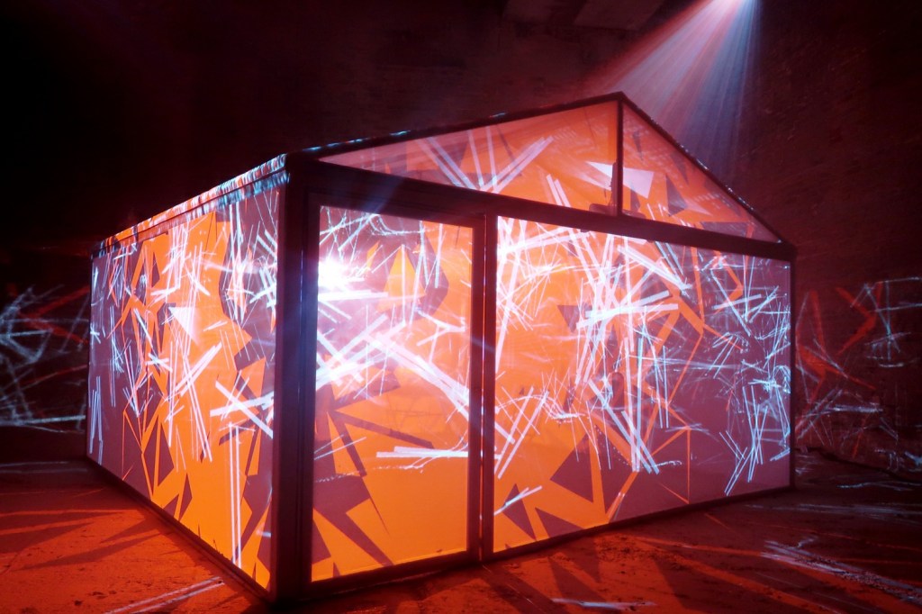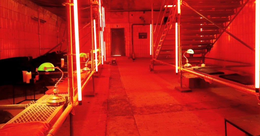 In den labyrinthartigen Gängen präsentieren sich in fast vollständiger Dunkelheit elf multimediale Kunstinstallationen,